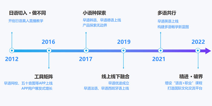早道優途是早道教育旗下專為教育部門、學校、企 業提供信息化產品及內容的綜合服務商。秉承因材 施教、助力教育的理念 ,逐步延伸發展成為小語種 智慧教育產品與服務提供商。