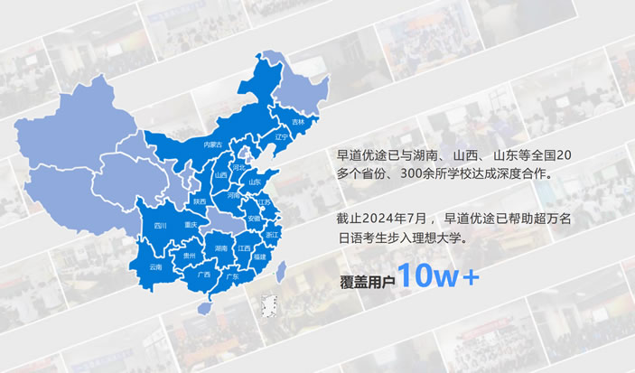 早道教育集團,國家高新技術企業、遼寧省專精特新企業、瞪羚企業。2012年7月成立,總部位于美麗的海濱城市大連, 辦公面積4000余平,在東京、濟南設立辦事處。旗下擁有早道網校、早道優途、早道留學、早道研學、早道出版五大業務品牌,先后獲得多輪VC投資,穩居多語教育行業頭部。截至目前,早道擁有發明專利3項、軟著80余項、其他知識產權 110余件、出版物累計銷量超20萬。